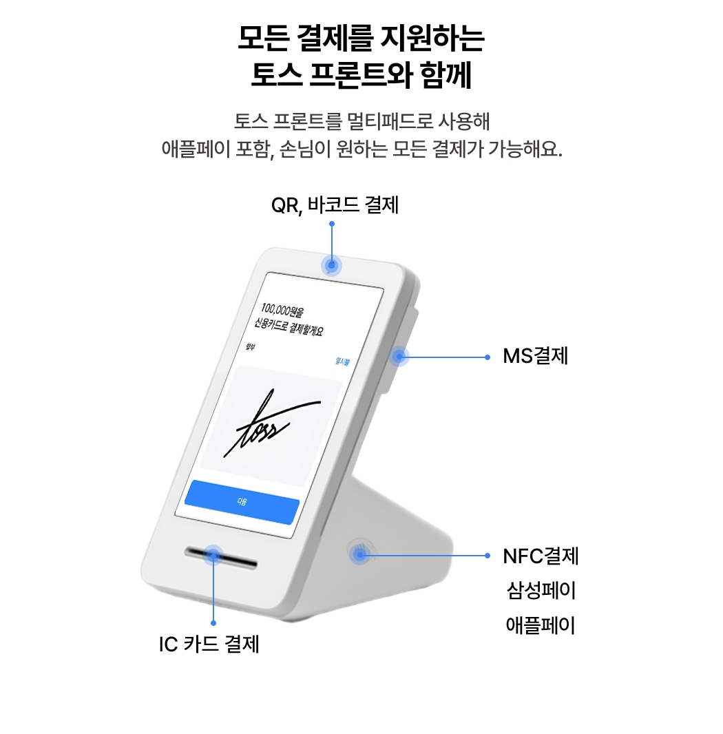 토스 키오스크 탑재 멀티패드 다양한 결제 수단 지원