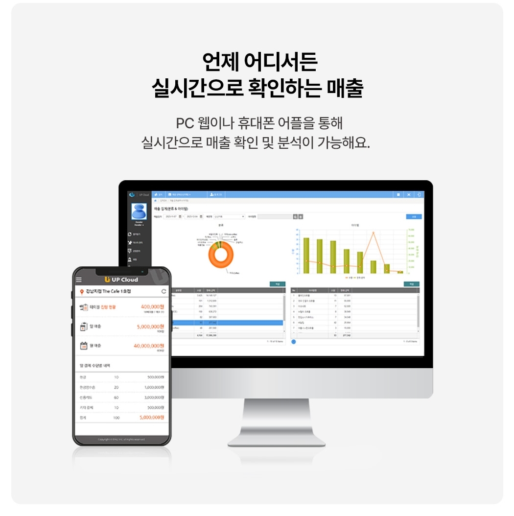 15인치 미니 키오스크 실시간 매출 확인 및 분석 화면