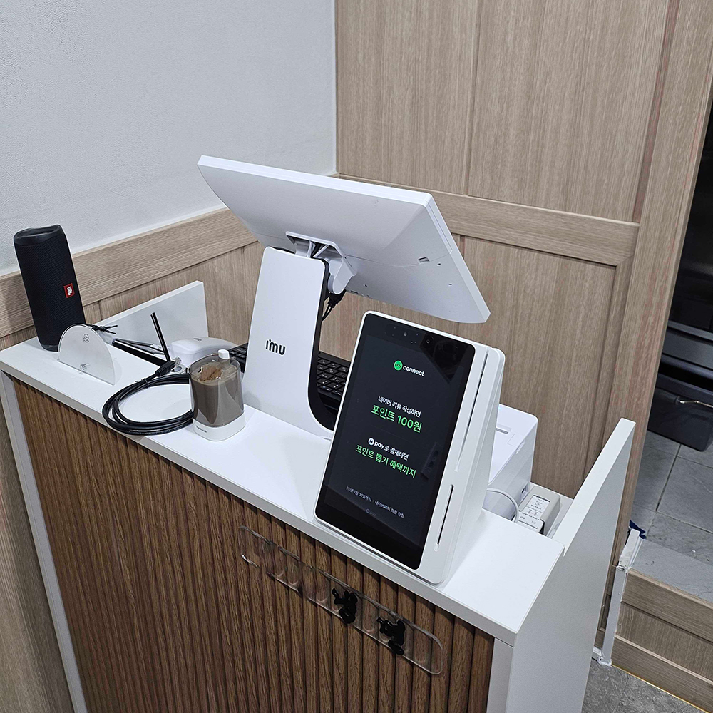 서명패드가 일체형이라 공간 활용도 더 좋고 깔끔하게 정리된 느낌으로 사용하고 있어요 기존에 쓰던거는 선이 주렁주렁 달려서 지저분했는데 전원 랜카드까지 추가해서 무선으로 사용중입니다! 사용방법도 쉽고 디자인도 너무 이뻐요 또 애플페이랑 QR 결제 기능까지 있어서 고객들도 만족하고 잘 사용할 것 같아요!
