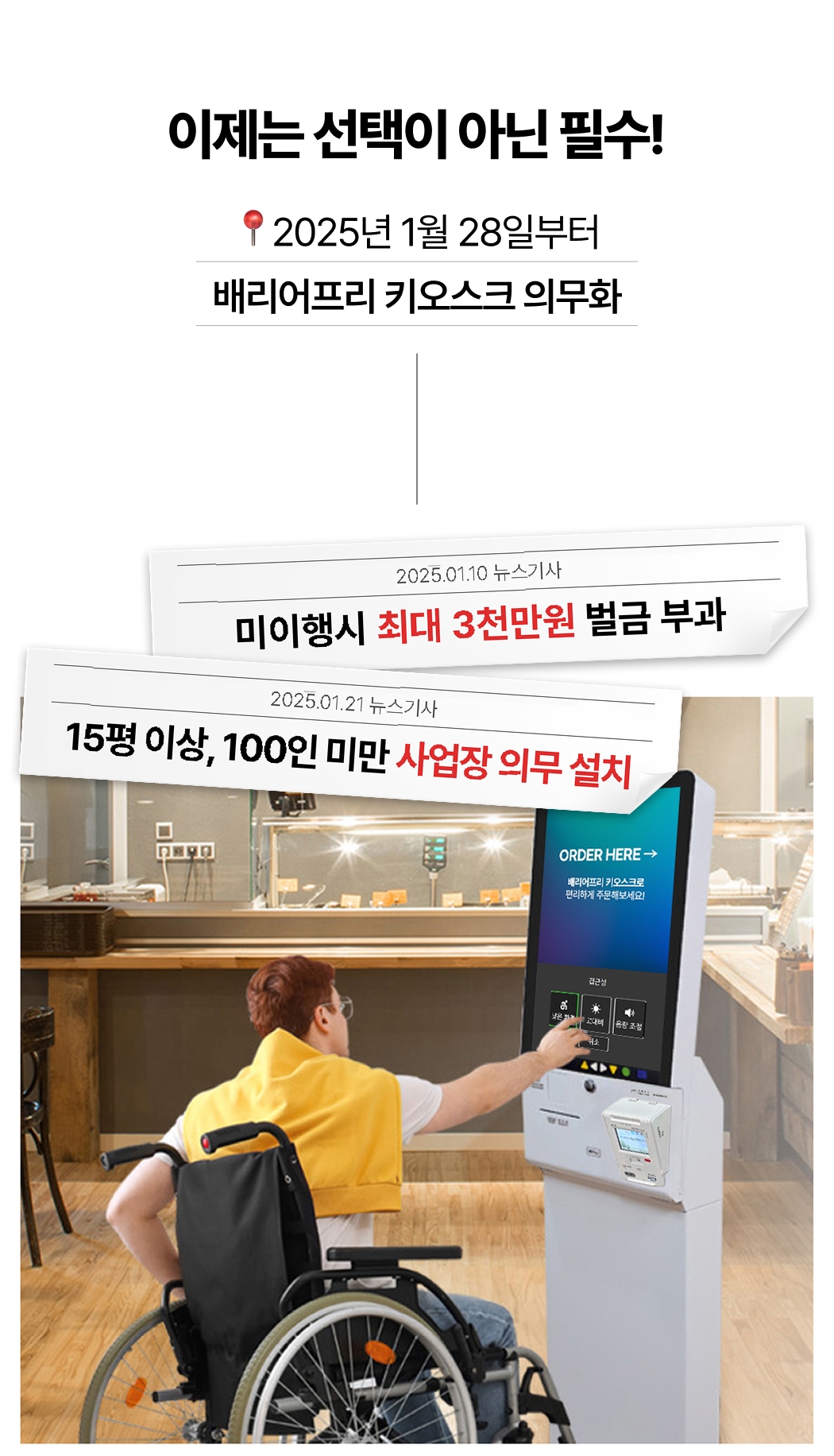 배리어프리키오스크  휠체어 사용자를 위한 저자세 모드 안내 화면