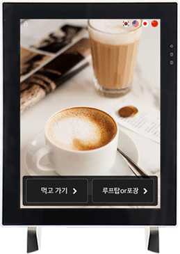 테이블에 설치된 공간 활용도가 높은 15인치 미니 키오스크