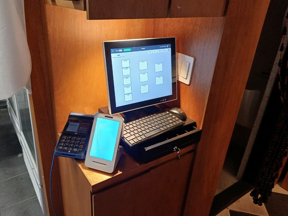 고객님께서 직접 결제 하실 수 있도록 하는 것이 너무 장점입니다. 포스기 연동과 네이버 연동까지 어려운 부분에서도 바로 바로 체크를 해주십니다. 상품등록은 포스기뿐만 아니라 PC상에서도 추가 가능하답니다. 카운터가 좁은데 크기도 아주 적당해 좋은상품 만들어주셔서 감사합니다^^